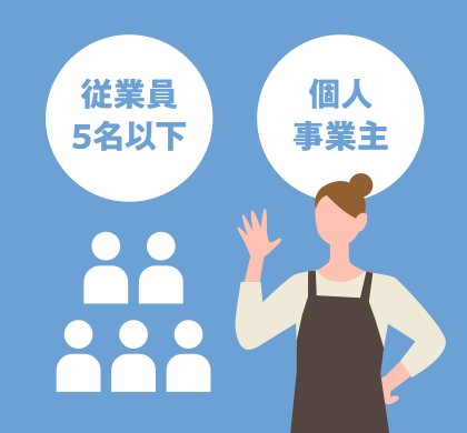 従業員数が5名以下の会社・個人事業主の方。または同じ条件で開業予定の方。